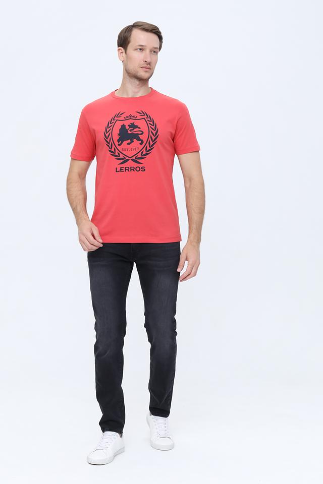 Мужская футболка Lerros коричневого цвета с оригинальным принтом в виде геральдического льва. Классический крой и 100% хлопковый состав обеспечивают комфорт и удобство в носке. Стильное решение для повседневного образа. Состав: хлопок 100%