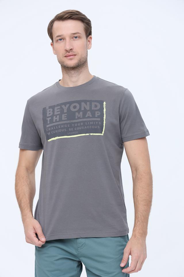 Мужская футболка Lerros серого цвета с оригинальным принтом на передней части. Изготовлена из 100% хлопка, обеспечивающего комфорт и воздухопроницаемость. Отличный выбор для повседневного образа. Состав: хлопок 100%
