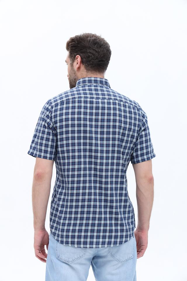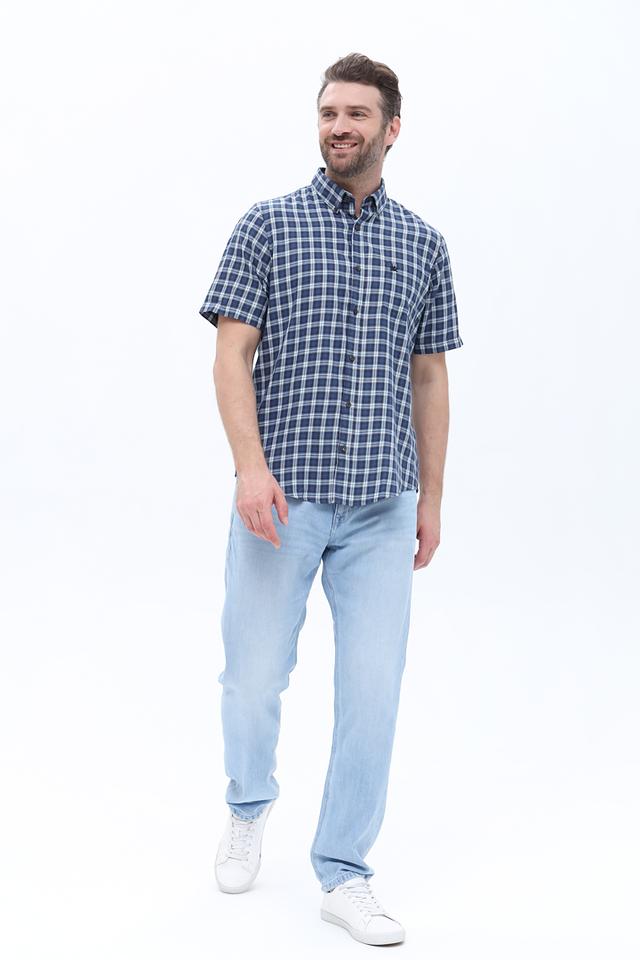Рубашка имеет короткий рукав, что делает ее идеальным выбором для теплой погоды. Она изготовлена из 100% хлопка, что обеспечивает комфорт и воздухопроницаемость в течение всего дня.