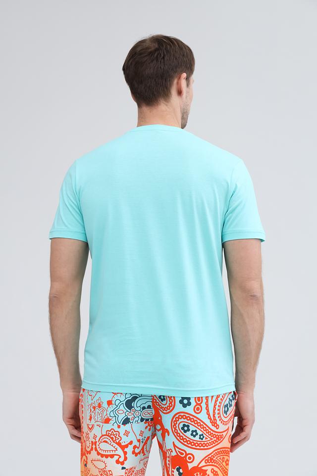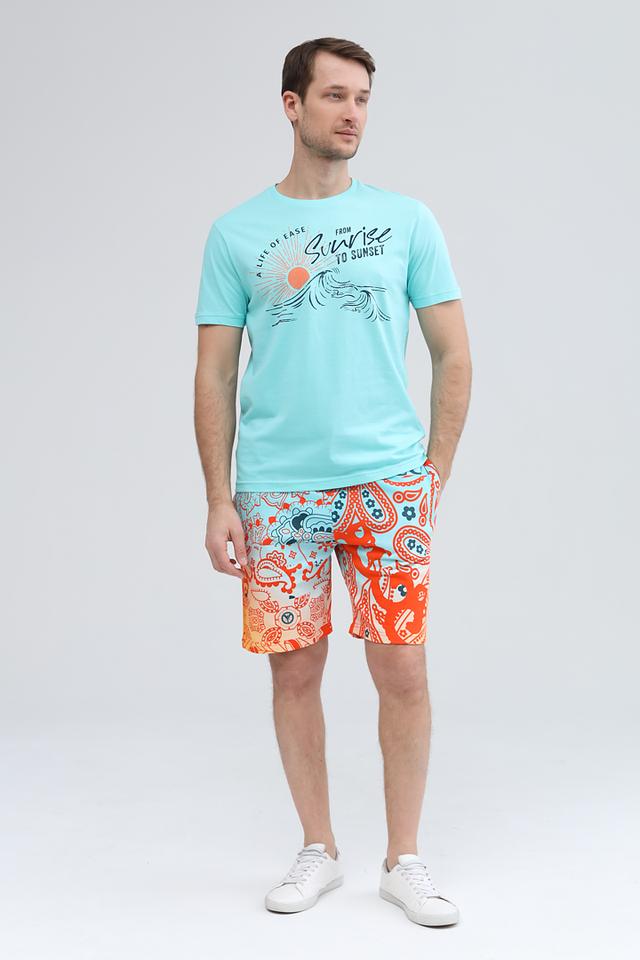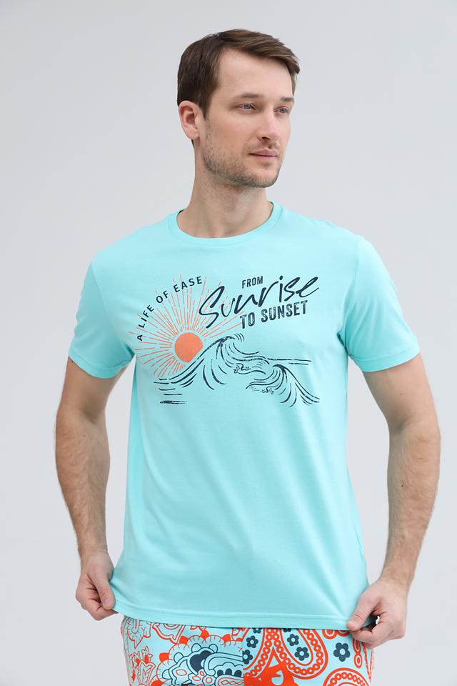 Мужская футболка Lerros выполнена в приятном бирюзовом цвете и украшена оригинальным принтом с изображением восхода и заката. Футболка имеет классический прямой крой, который подходит для любого типа фигуры.