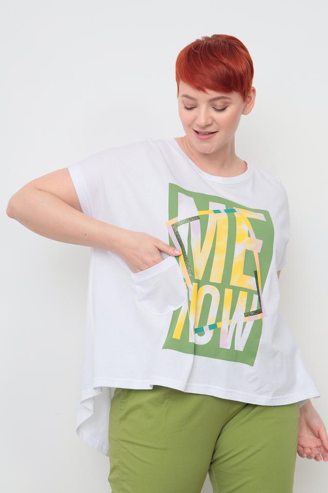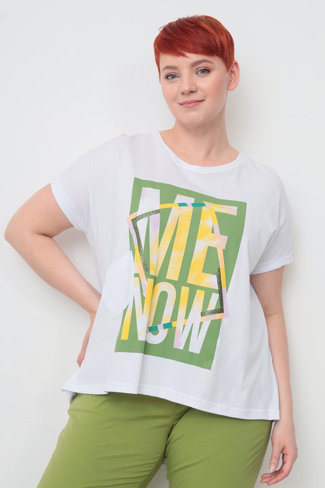Белая футболка Lisa Campione с ярким принтом "ME NOW" станет стильным дополнением к вашему гардеробу. Модель свободного кроя из мягкого хлопка с добавлением эластана обеспечивает комфорт и свободу движений. Состав: хлопок 94%, эластан 6%