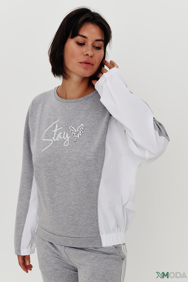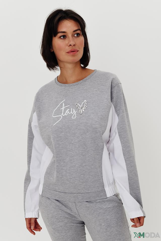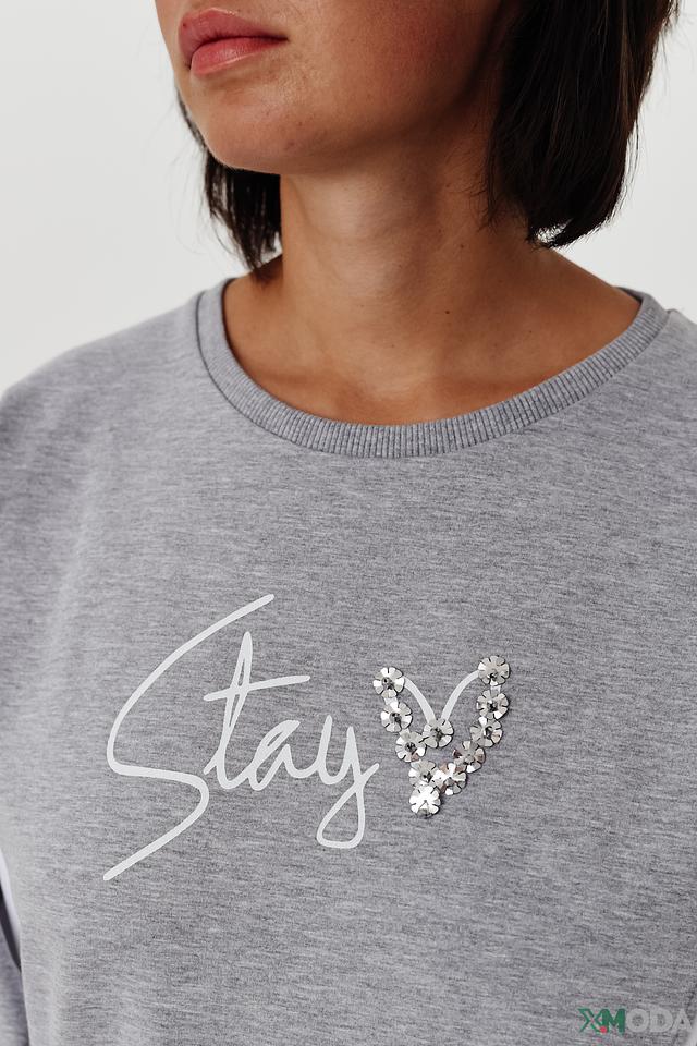 Серый пуловер Lisa Campione с надписью "Stay" и бабочкой – стильный выбор для повседневного образа. Модель выполнена из мягкого хлопка с добавлением полиэстера и эластана, обеспечивающих комфорт и удобство в носке. Состав: хлопок 70%, полиэстер 25%, эластан 5%
