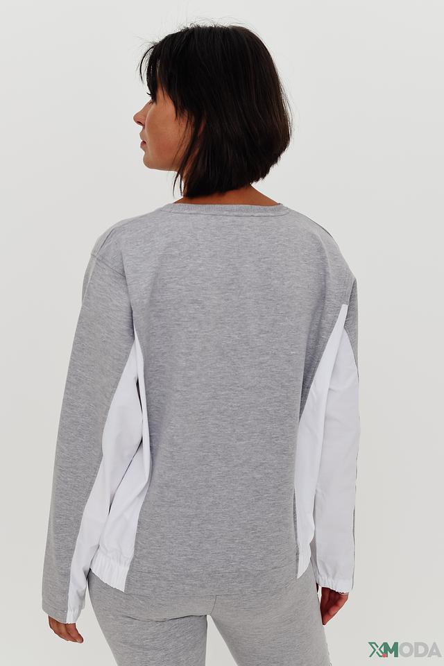 Пуловер имеет свободный крой, который обеспечивает комфорт при носке. Белые вставки на плечах и рукавах добавляют динамики и оригинальности образу. Изготовлен из приятной к телу ткани, состоящей из 70% хлопка, 25% полиэстера и 5% эластана.