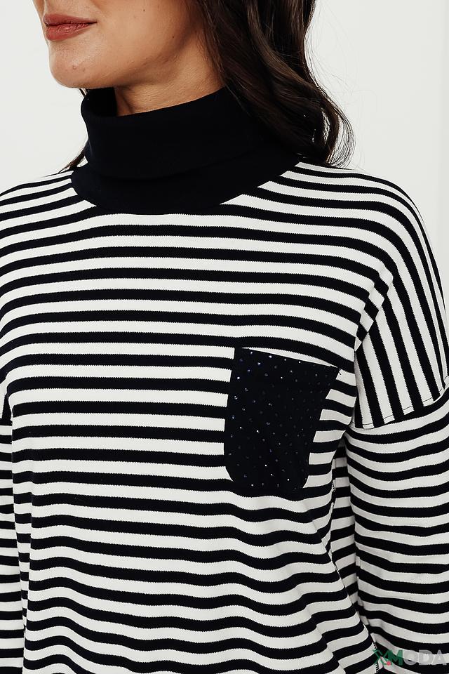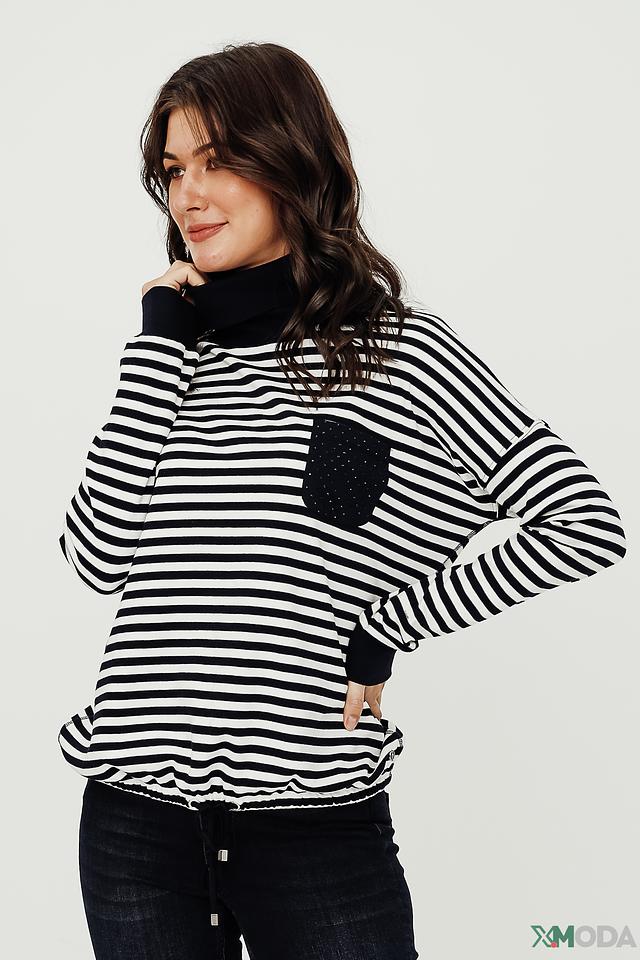 Водолазка Lisa Campione чёрно-белого цвета – стильная и удобная модель из 100% хлопка. Имеет полосатый рисунок и оригинальный карман с отделкой. Идеально подходит для создания повседневных образов. Состав: хлопок 100%