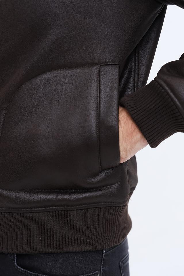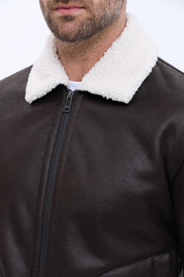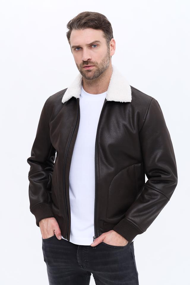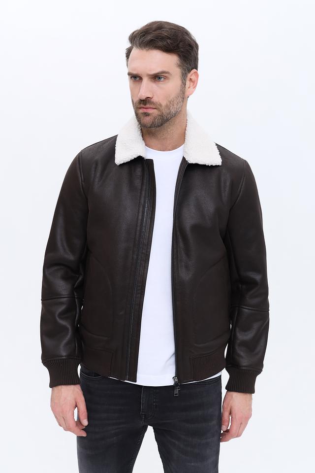 Куртка имеет классический коричневый цвет, который легко сочетается с различными стилями одежды. Высокий воротник, отделанный мягким искусственным мехом, защищает от холода и ветра, придавая образу элегантность.