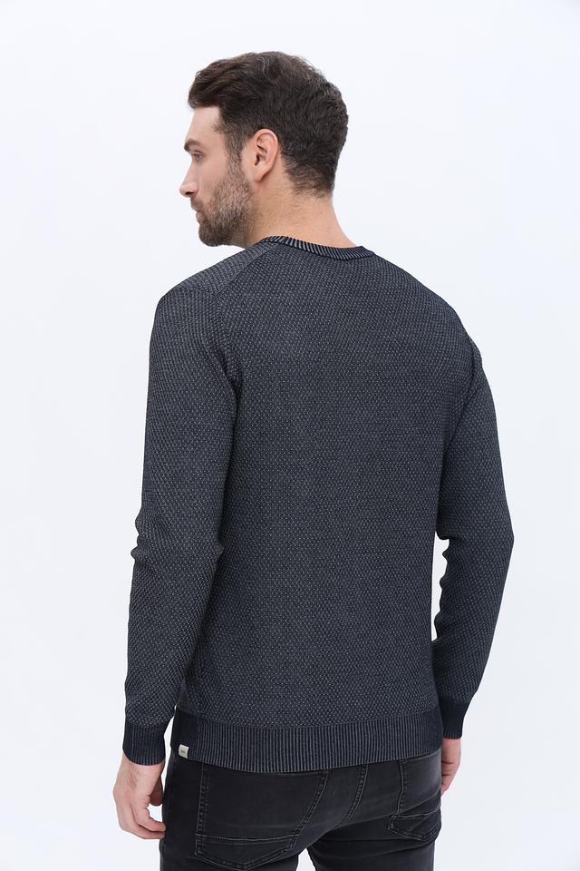 Джемпер имеет классический крой с круглым вырезом горловины и длинными рукавами. Манжеты и нижний край изделия выполнены из плотного трикотажа в рубчик, что обеспечивает более аккуратный и завершенный образ.