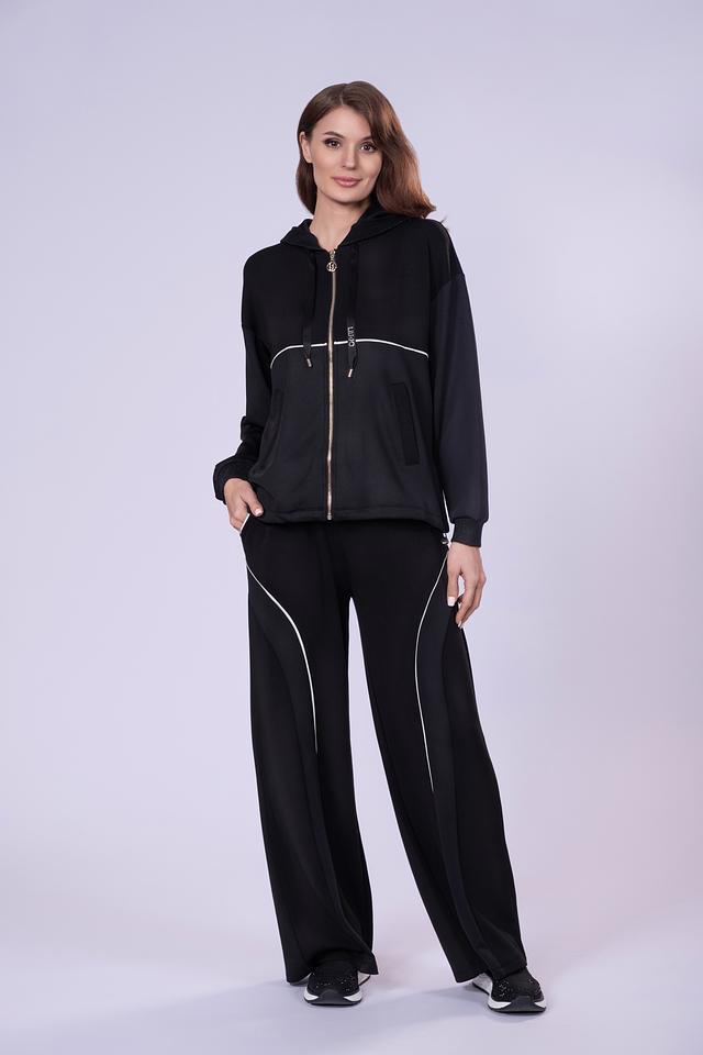Чёрные брюки Liu-Jo — это стильное и комфортное решение для повседневного гардероба. Модель выполнена из мягкой ткани с добавлением модала и эластана, а декоративные полосы придают образу спортивный шик. Состав: полиэстер 48%, модал 48%, эластан 4%
