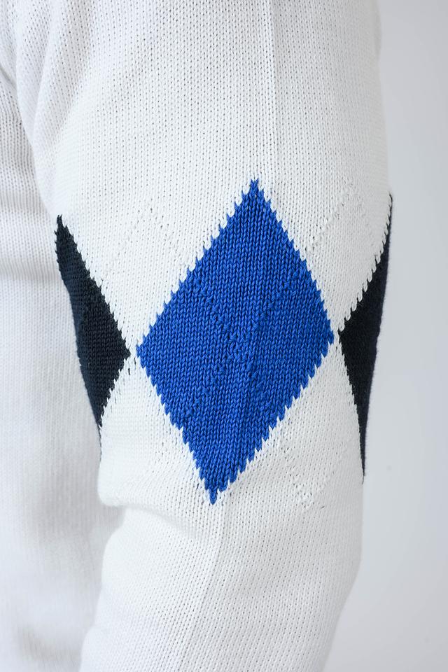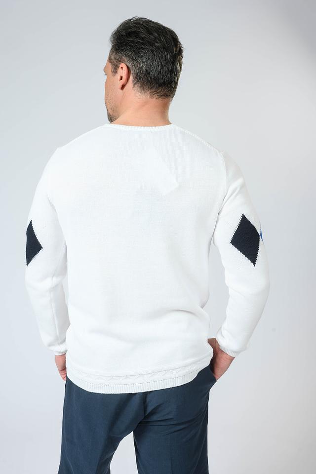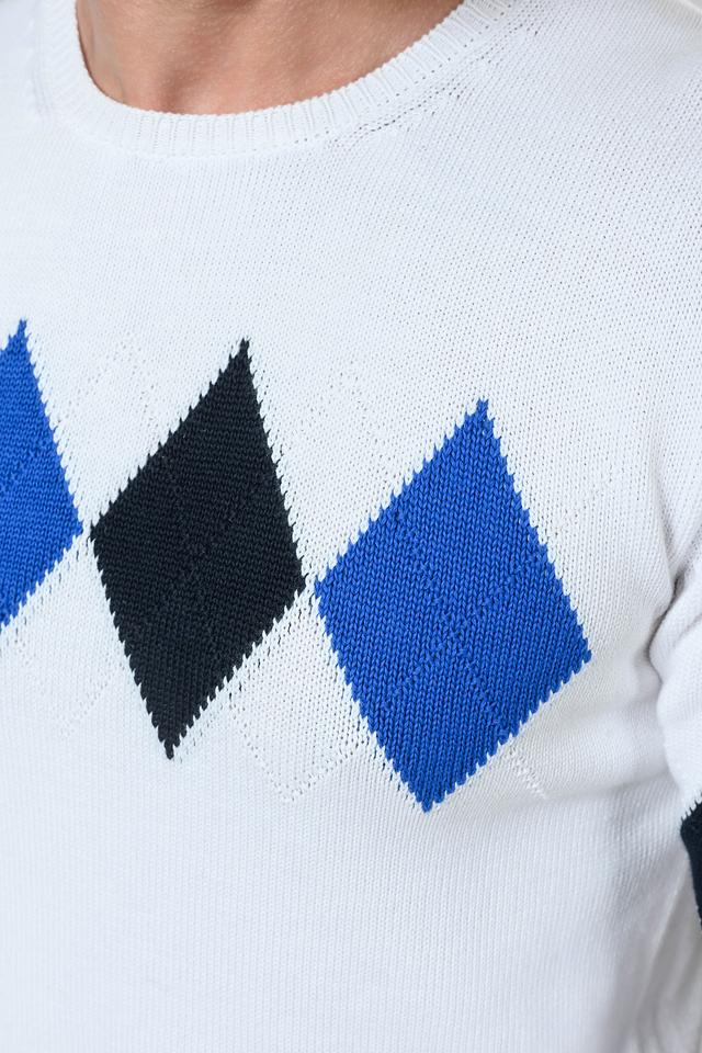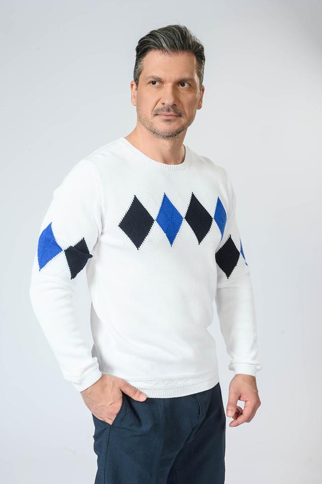 Белый мужской джемпер Liu-Jo с геометрическим узором в виде ромбов. Изготовлен из 100% хлопка, обеспечивающего комфорт и воздухопроницаемость. Стильный и универсальный выбор для повседневного гардероба. Состав: хлопок 100%