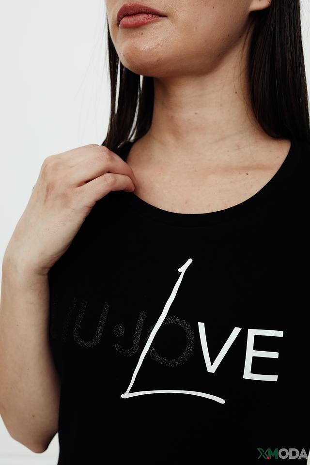Чёрная футболка Liu-Jo с короткими рукавами, украшенная стильным логотипом. Изготовлена из 100% хлопка, обеспечивая комфорт и удобство в носке. Идеальный выбор для создания повседневных образов. Состав: хлопок 100%