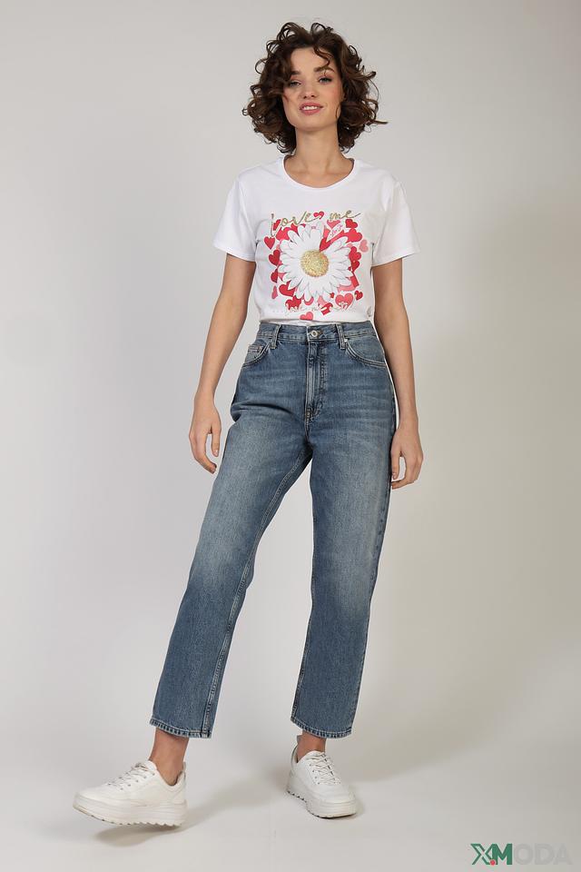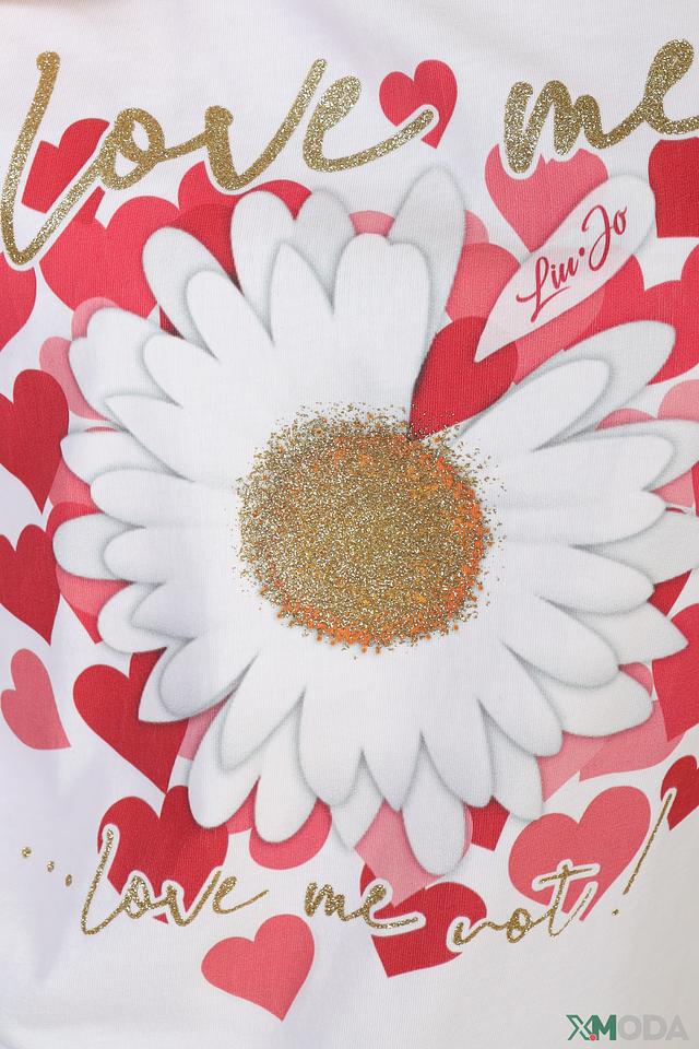 Белая футболка Liu-Jo Jeans с ярким цветочным принтом и надписью "love me". Изготовлена из мягкого хлопка с добавлением эластана для комфорта и лучшей посадки. Стильный и женственный образ для повседневной носки. Состав: хлопок 95%, эластан 5%