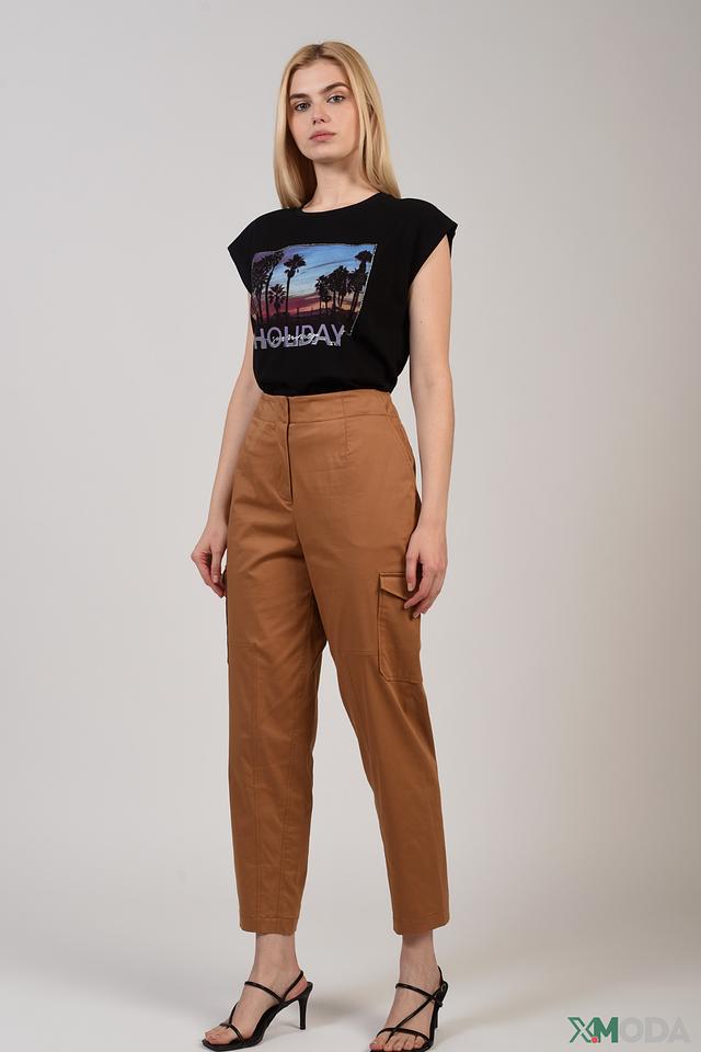 Фасон футболки – прямой, с короткими рукавами, которые слегка закасаны, что придает ей более расслабленный и современный вид. Округлый вырез горловины.