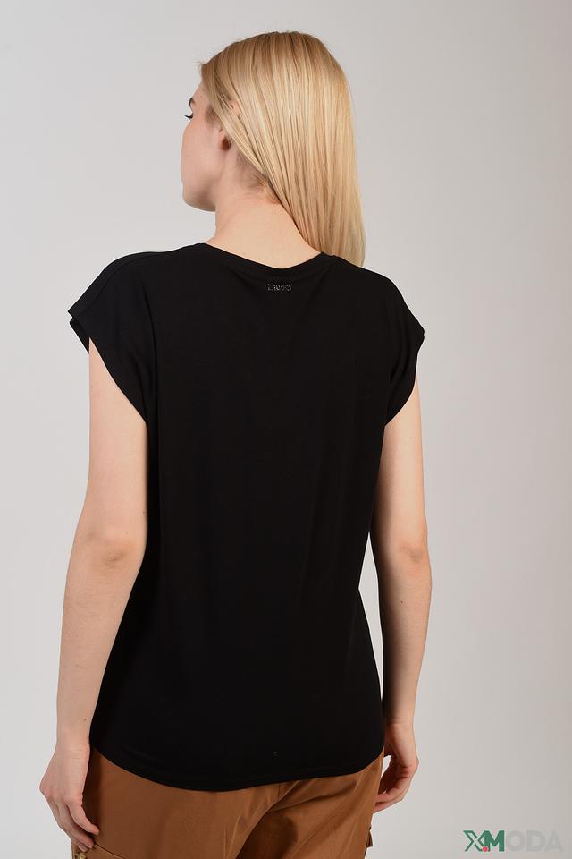 Чёрная футболка Liu-Jo Jeans с ярким принтом "Holiday" станет стильным дополнением к вашему гардеробу. Модель выполнена из мягкого хлопка с добавлением эластана для комфорта и свободы движений. Состав: хлопок 95%, эластан 5%