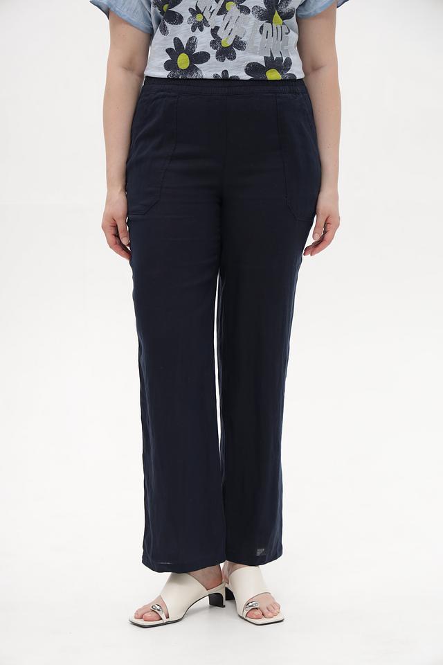 Классический тёмно-синий цвет делает эти брюки универсальными и легко сочетаемыми с различными верхами. Прямой крой обеспечивает свободу движений, а эластичный пояс гарантирует удобную посадку.