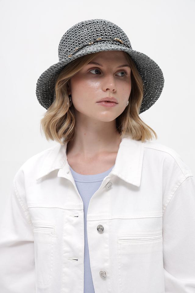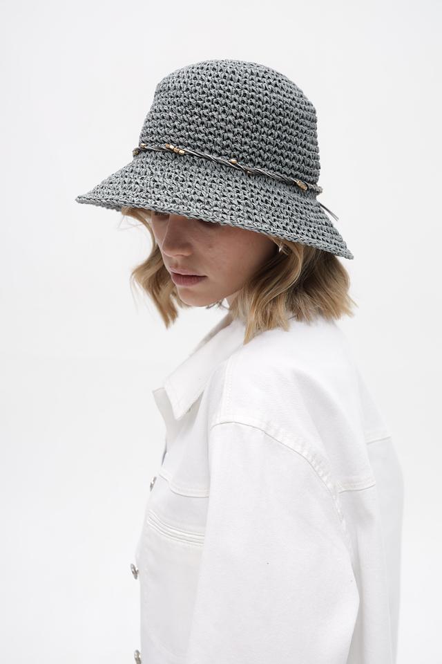 Стильная шляпа от Loevenich серого цвета с плетёной текстурой и декоративной отделкой. Изготовлена из 100% бумаги, идеально дополнит летний образ. Состав: бумага 100%