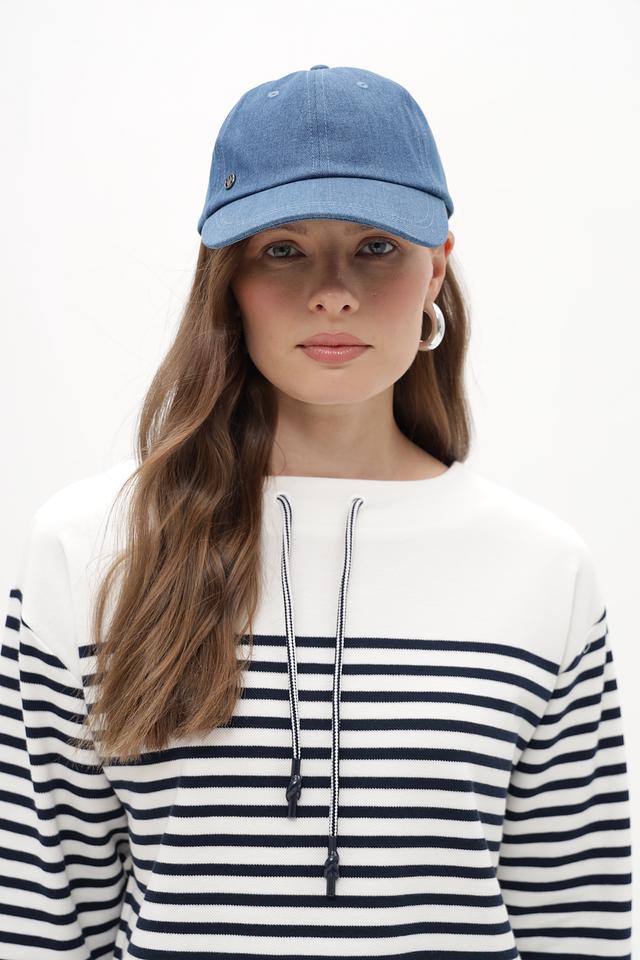 Женская бейсболка от Loevenich выполнена из качественного денима, состоящего из 100% хлопка. Модель имеет классический шестипанельный крой с загнутым козырьком.