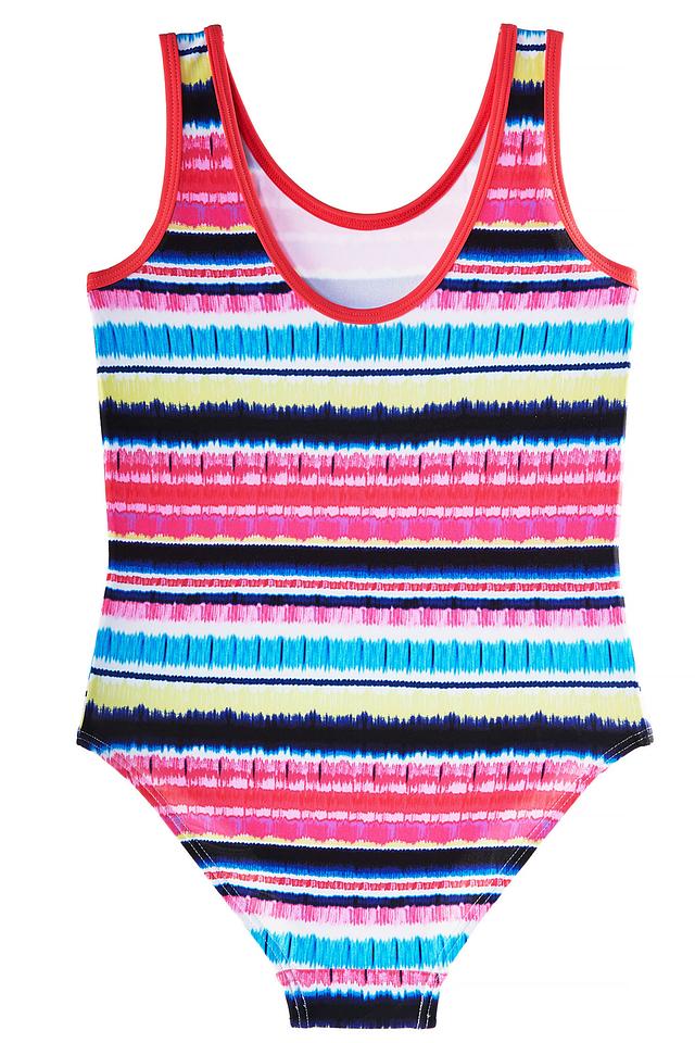 Детский купальник Lowry разноцветный в полоску с красной окантовкой