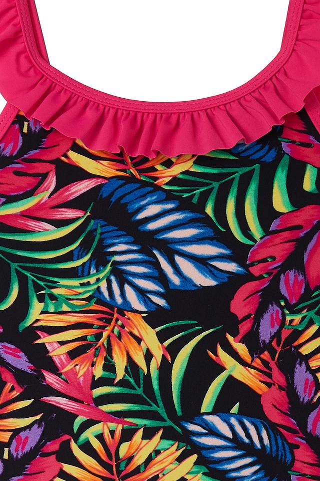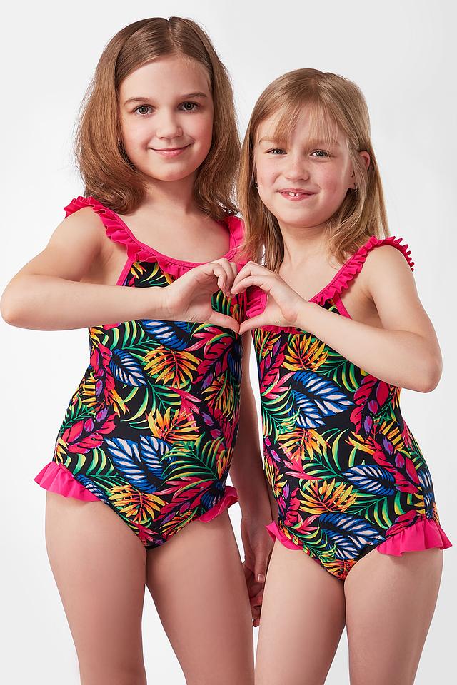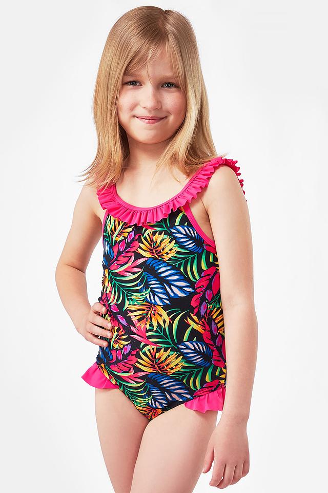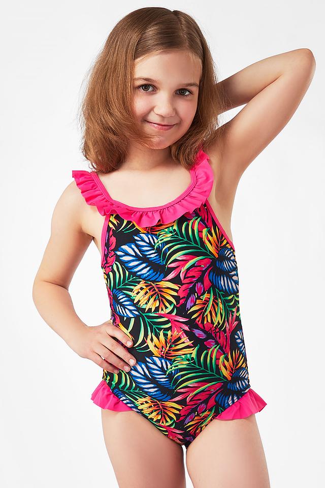 Этот очаровательный купальник от Lowry станет отличным выбором для юных любительниц плавания и игр на пляже. Купальник выполнен в яркой цветовой гамме с тропическим принтом, который обязательно понравится девочкам.