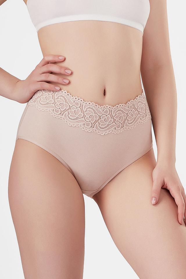Бежевые трусы от Lowry с изящным кружевным поясом. Модель выполнена из мягкого хлопка с добавлением эластана для комфорта и идеальной посадки. Состав: хлопок 95%, лайкра 5%