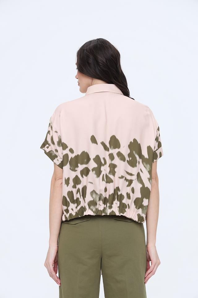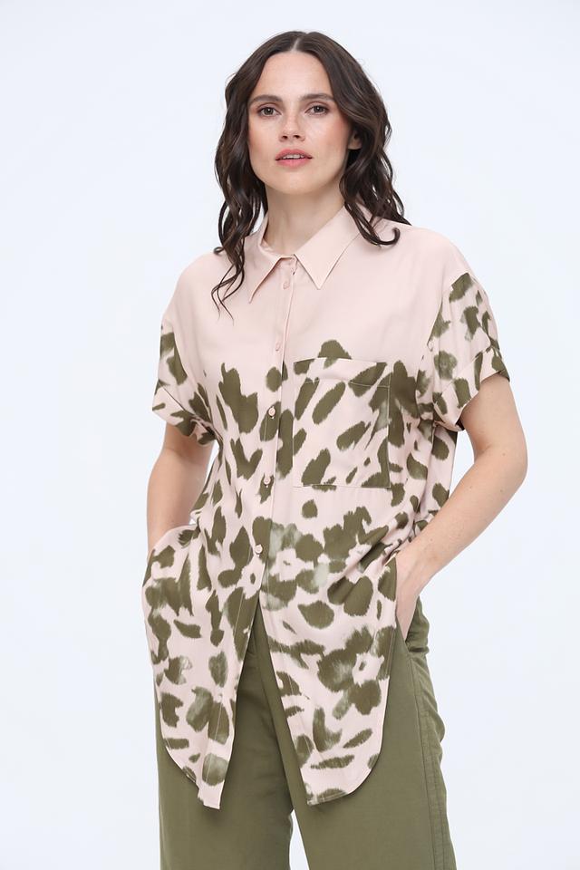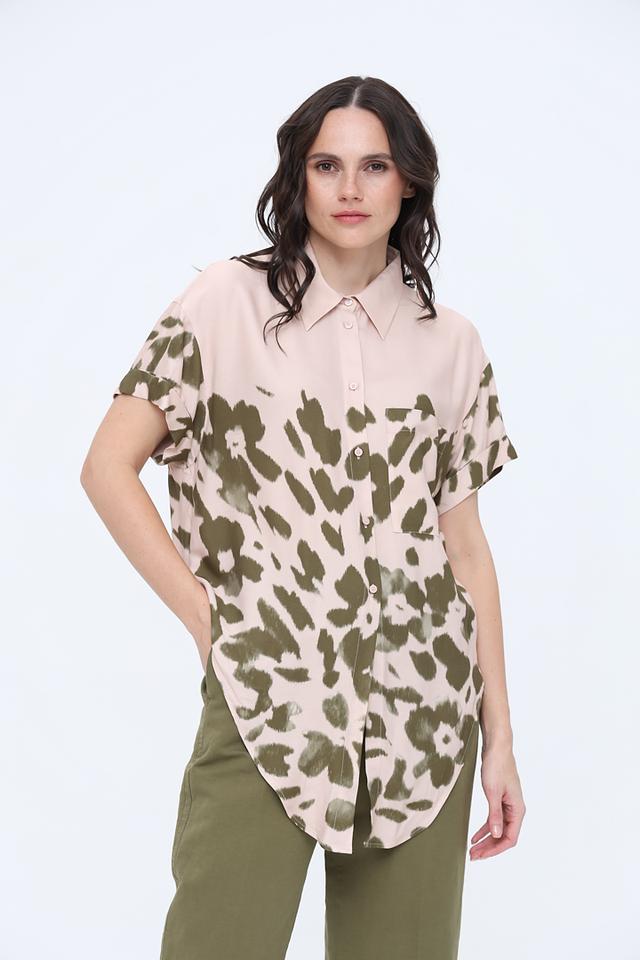 Эта рубашка от Luisa Cerano станет ярким акцентом в вашем гардеробе. Выполнена в нежно-розовом цвете с абстрактным принтом в оливковых тонах.