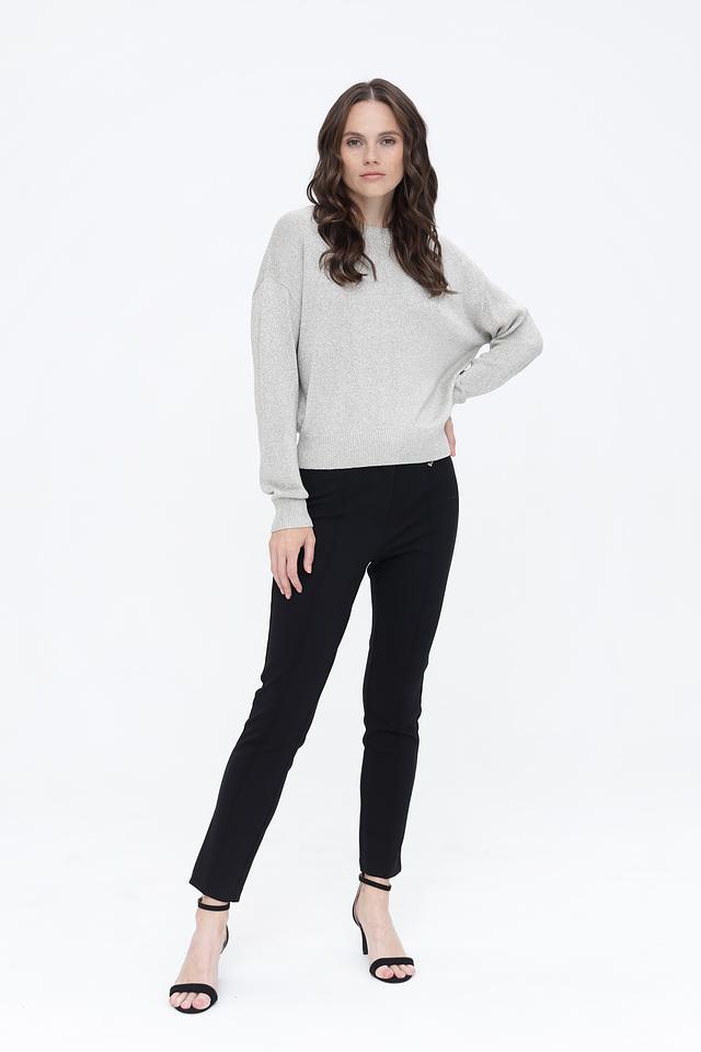 Модель имеет классический крой с длинными рукавами и округлым вырезом горловины. Пуловер изготовлен из высококачественной вискозы (80%) и полиэстера (20%), что делает его приятным к телу, дышащим и устойчивым к деформации.
