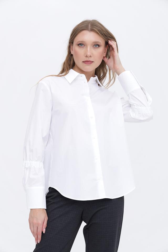 Состав ткани: 97% хлопок, 3% эластан. Эта рубашка идеально подойдет для создания как повседневных, так и более формальных образов. Она прекрасно сочетается с брюками, юбками и джинсами.