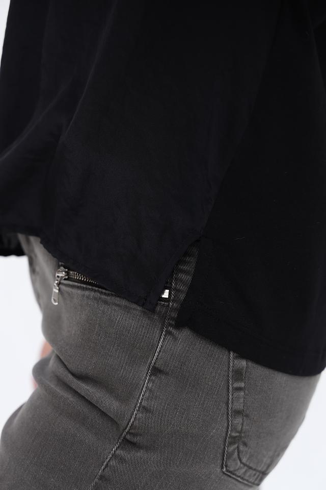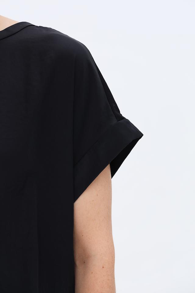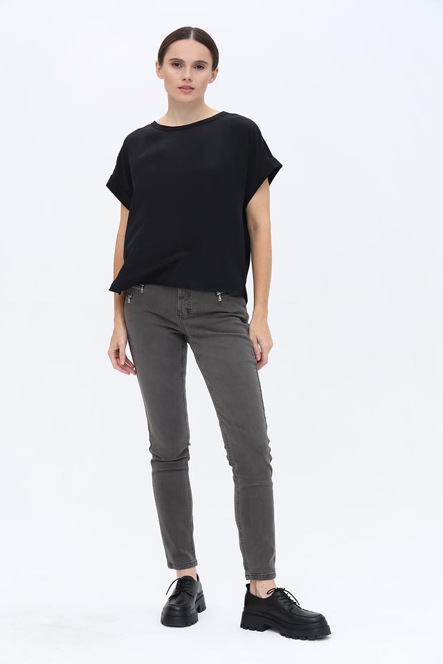 Особенностью данной блузы являются короткие рукава-крылышки, которые придают образу лёгкость и непринуждённость. Круглый вырез горловины делает модель универсальной и подходящей для различных типов фигуры.