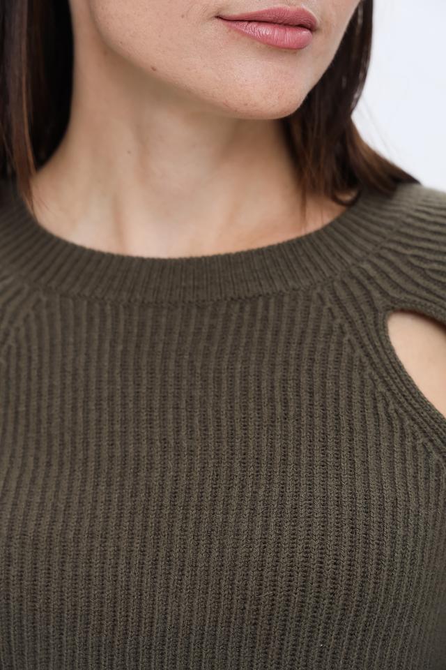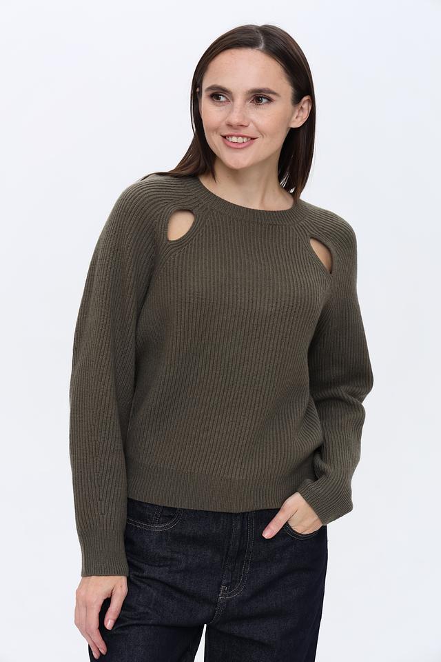 Женский пуловер Luisa Cerano хаки цвета с оригинальными вырезами на плечах. Изготовлен из мягкой и приятной к телу пряжи, сочетающей шерсть и полиакрил, что обеспечивает комфорт и долговечность изделия. Состав: шерсть 70%, полиакрил 30%