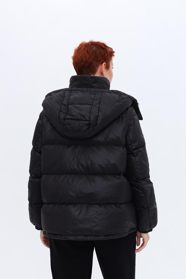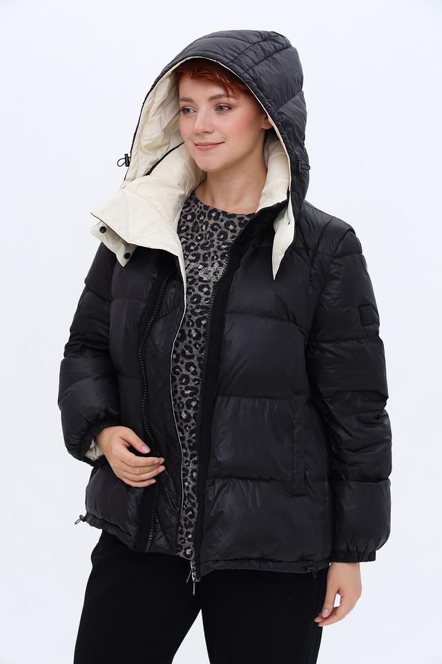 Чёрная стёганая куртка Luisa Cerano с капюшоном и кремовой внутренней отделкой. Модель имеет удобный крой и выполнена из 100% полиамида, обеспечивая легкость и комфорт. Состав: полиамид 100%