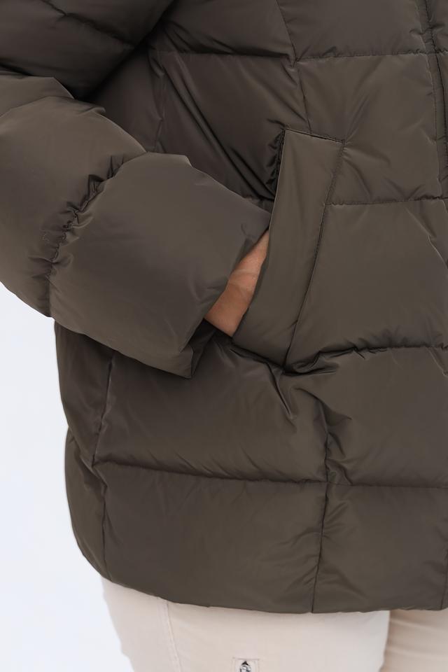 Куртка имеет прямой крой и объемный капюшон, который защитит от ветра и непогоды. Застежка – молния. Модель отличается стеганой фактурой, которая придает ей современный вид.