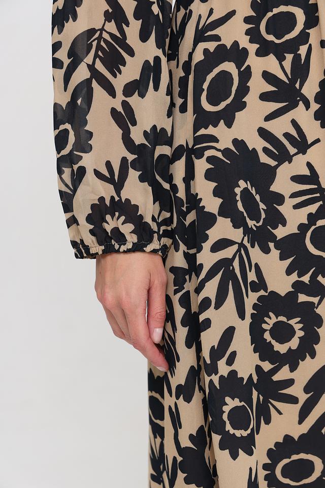 Это платье от Luisa Cerano выполнено из 100% вискозы, что обеспечивает комфорт и приятные ощущения при носке. Основной цвет платья – бежевый, который служит идеальным фоном для эффектного цветочного принта в черных тонах.