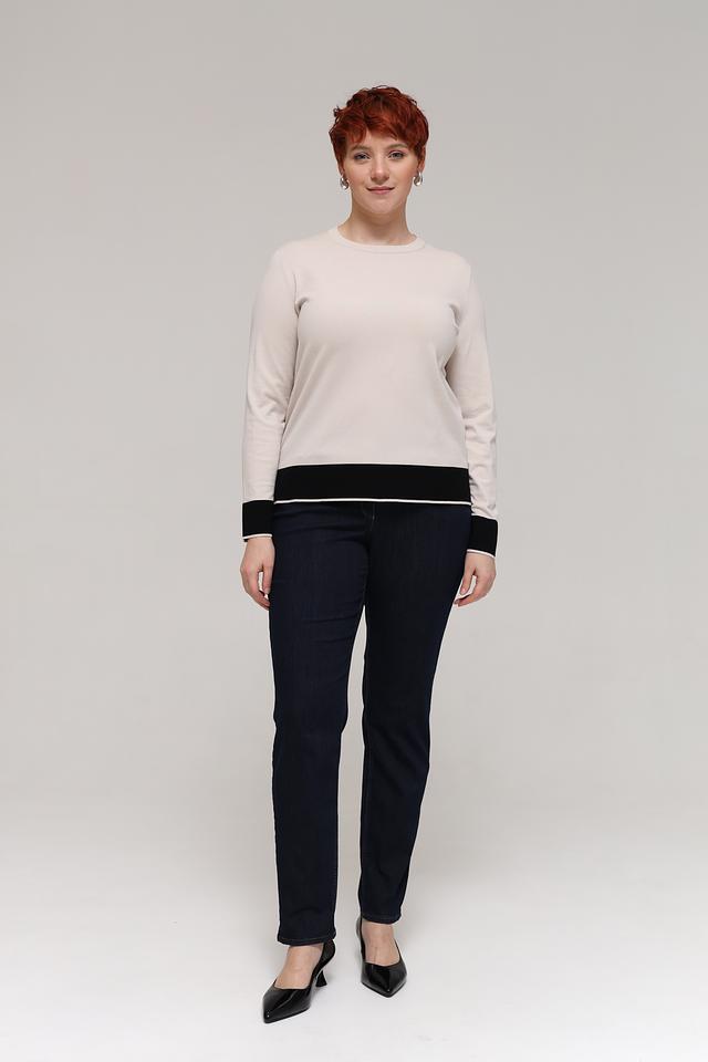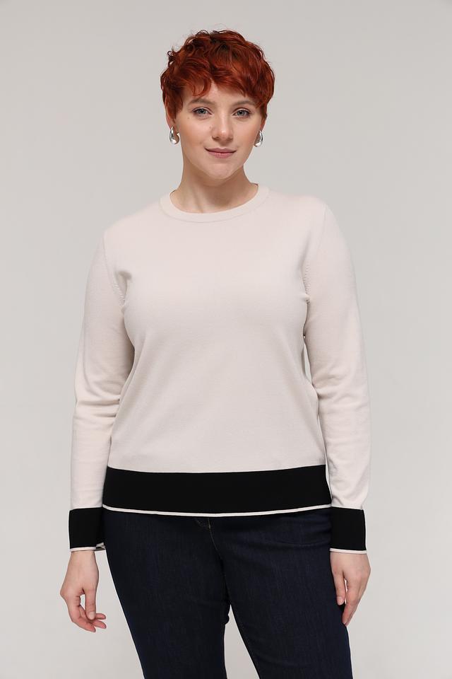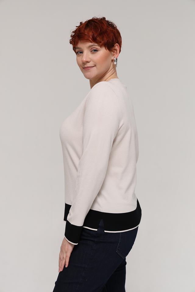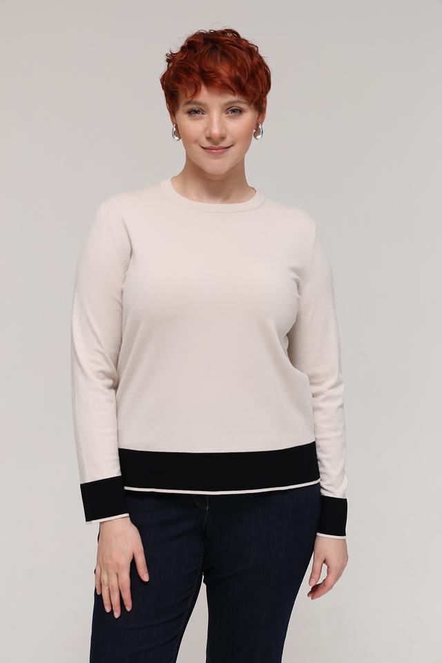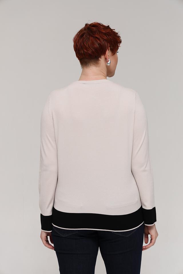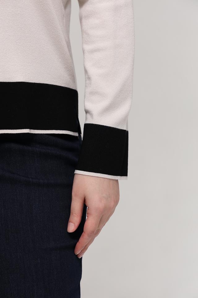 Бежевый пуловер Luisa Cerano с чёрно-белой полосой на манжетах и подоле. Изготовлен из мягкой вискозы и полиэстера, обеспечивающих комфорт и удобство в носке. Состав: вискоза 72%, полиэстер 28%