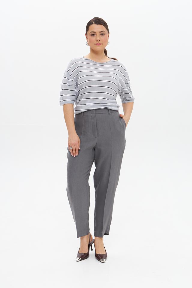 Эти брюки идеально подойдут для создания деловых и повседневных образов. Их можно сочетать с блузками, рубашками, топами и жакетами. Универсальный серый цвет легко комбинируется с другими цветами и аксессуарами.