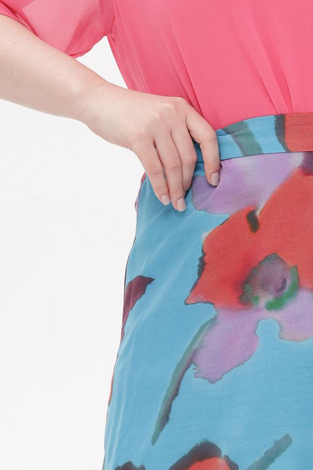 Юбка Luisa Cerano небесно-голубого цвета с ярким цветочным принтом. Изготовлена из хлопка с добавлением шелка для мягкости и комфорта. Идеальный выбор для создания элегантного и женственного образа. Состав: хлопок 72%, шелк 28%