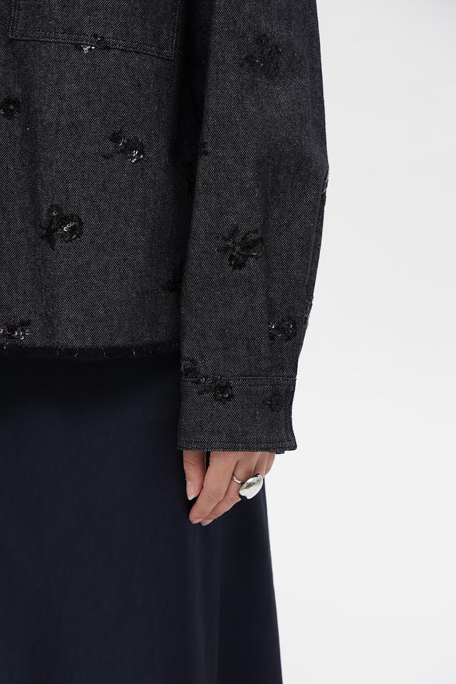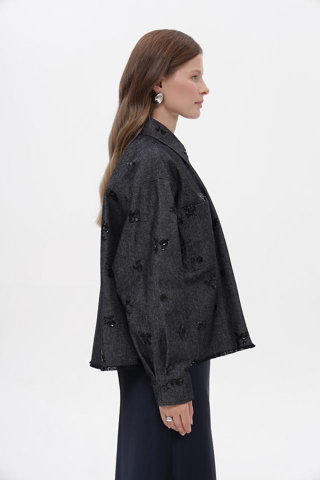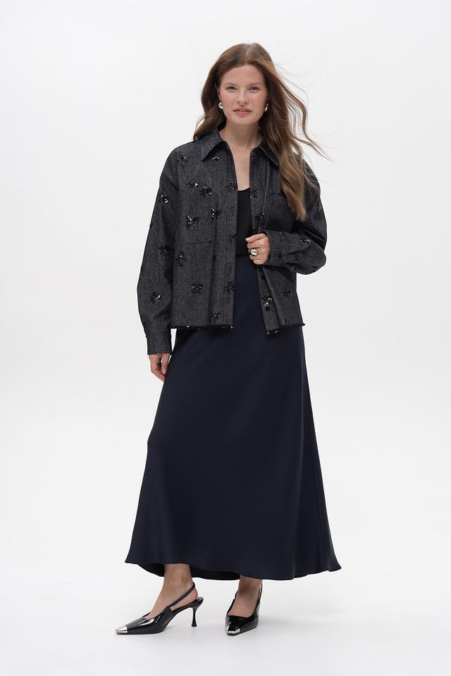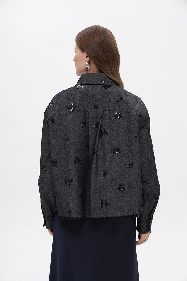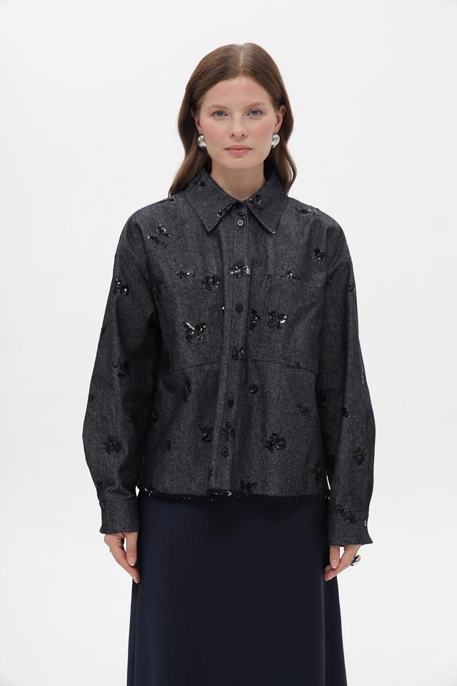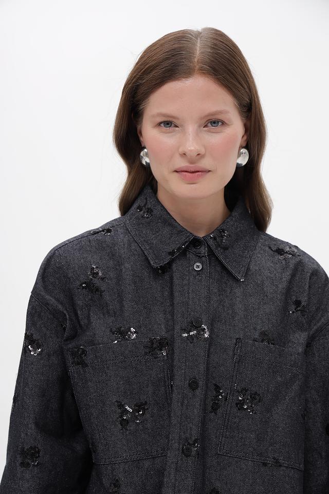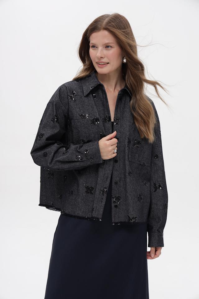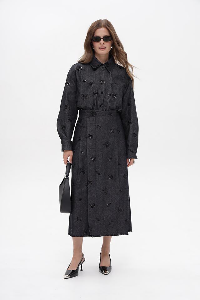 Модель имеет приталенный силуэт, длинные рукава и застегивается на пуговицы. Оригинальный декор в виде вышивки добавляет изделию изысканности.