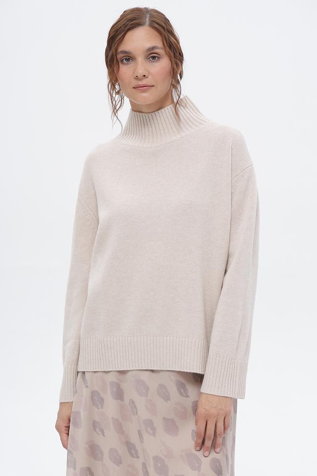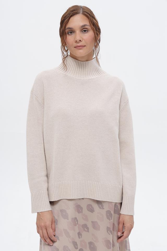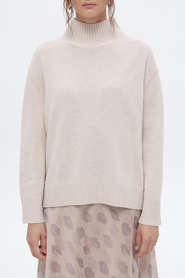 Бежевый пуловер от Luisa Cerano с высоким горлом выполнен из мягкой шерсти и кашемира. Идеальный выбор для создания уютных и элегантных образов. Состав: 90% шерсть, 10% кашемир. Состав: шерсть 90%, кашемир 10%