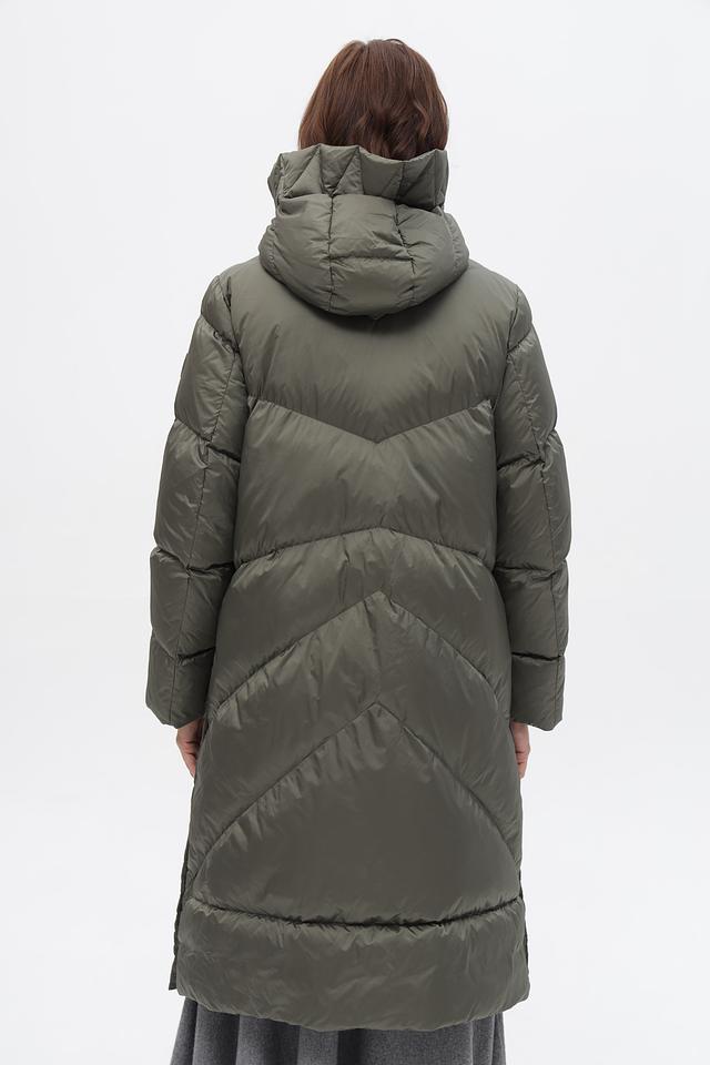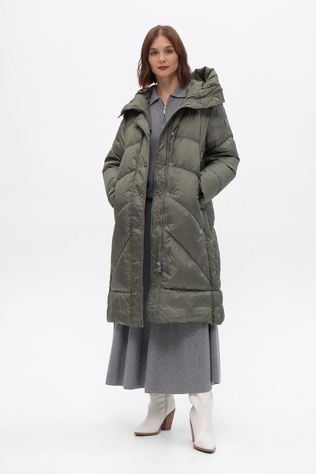 Модель отличается стеганой фактурой и актуальным оливковым цветом. Застежка-молния и кнопки обеспечивают надежную фиксацию, а удобный капюшон защитит от ветра и осадков.