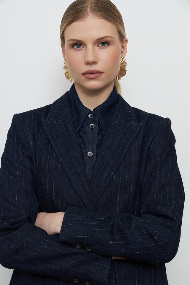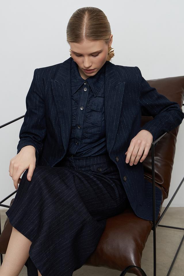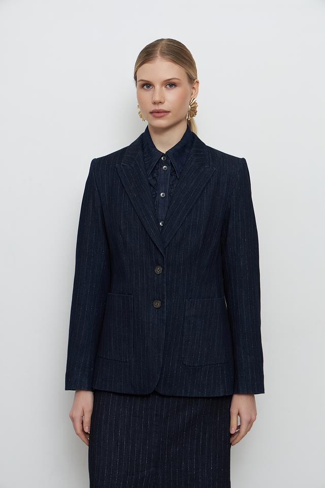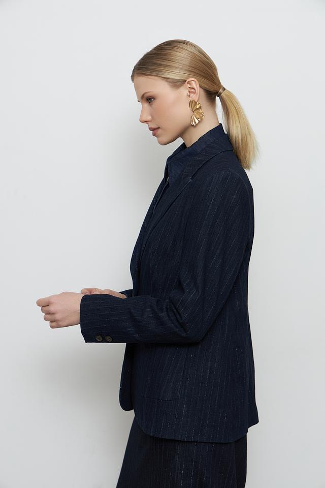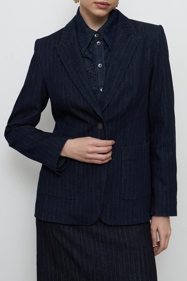 Этот жакет от Luisa Cerano станет незаменимой частью вашего гардероба. Выполненный в темно-синем цвете с деликатной полоской, он сочетает в себе классический стиль и современный дизайн.