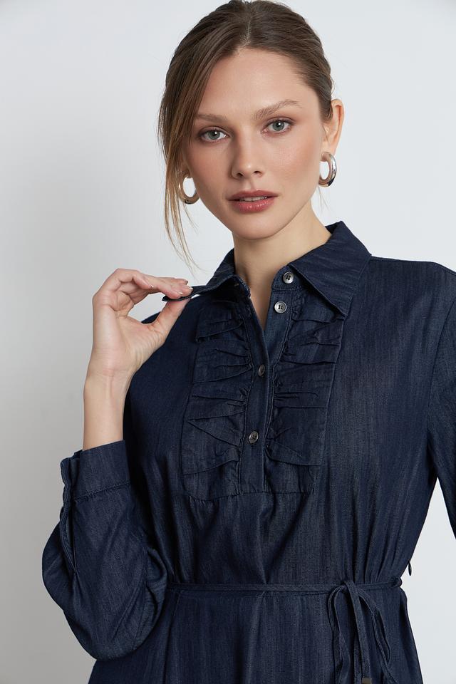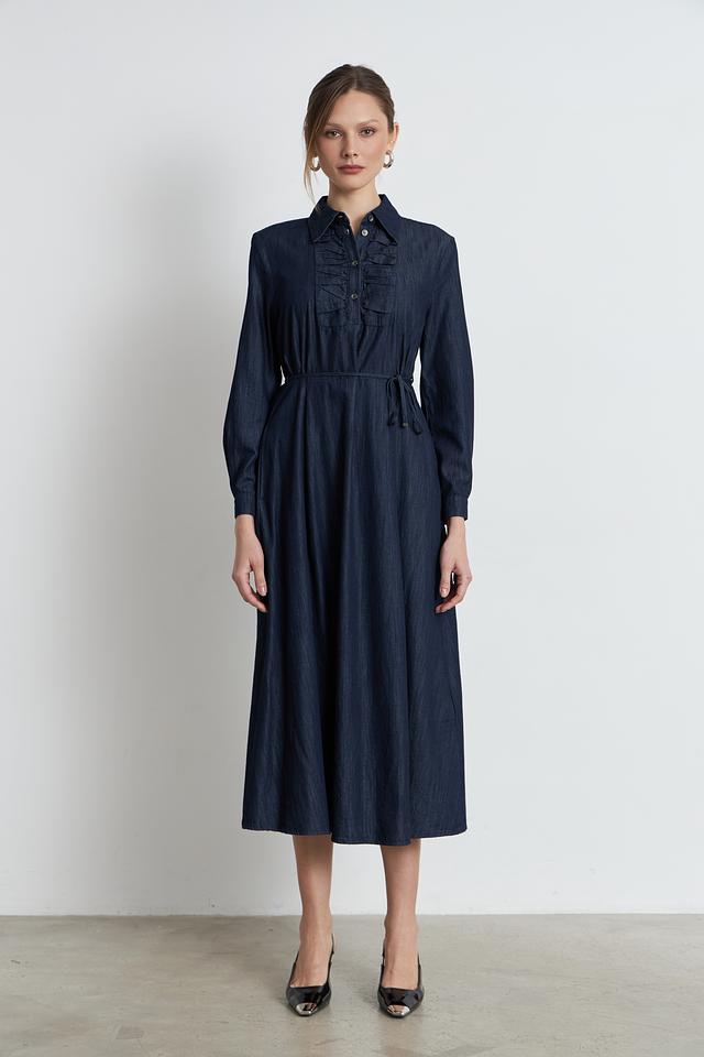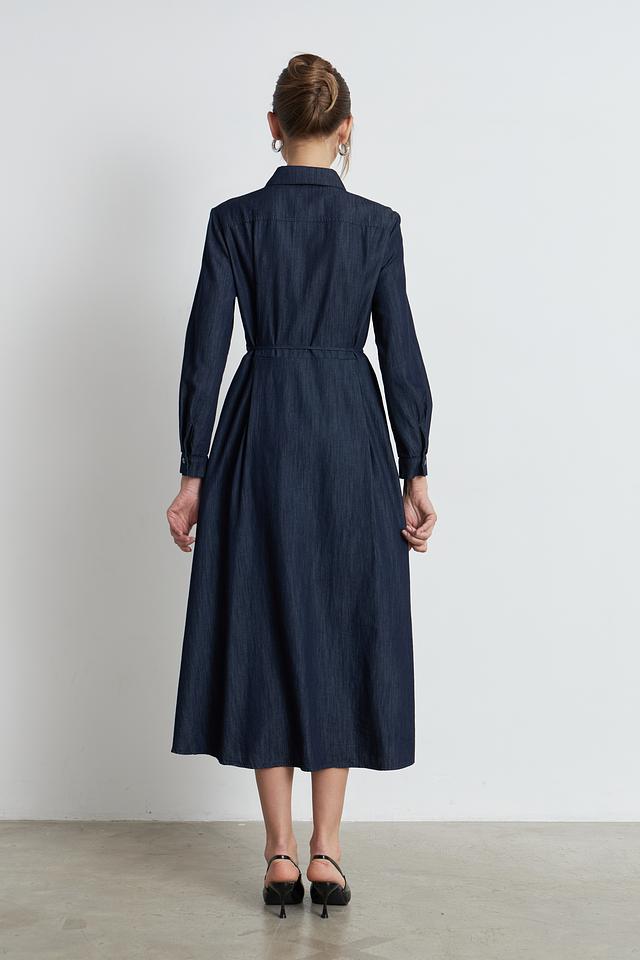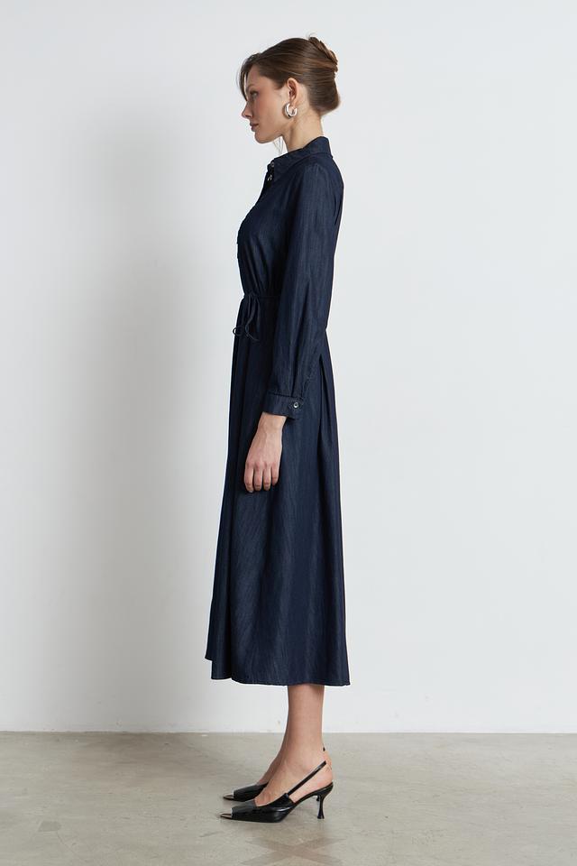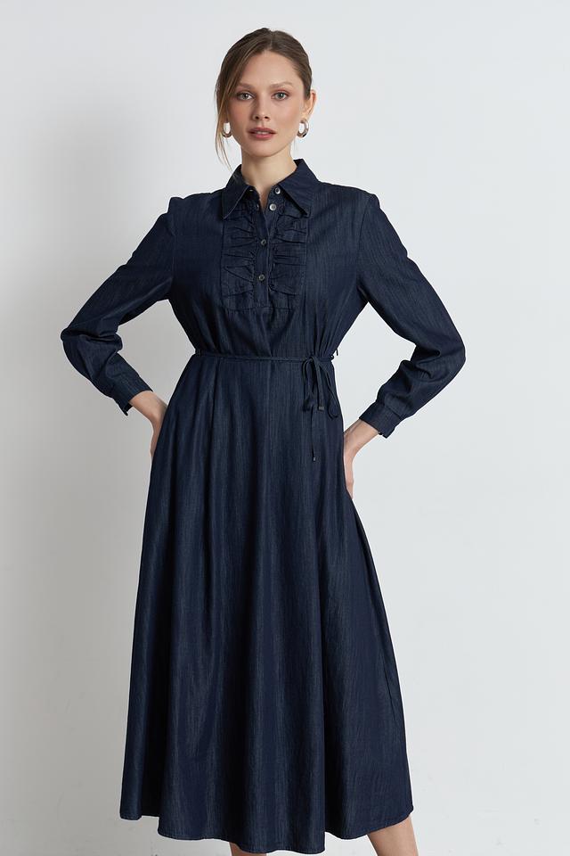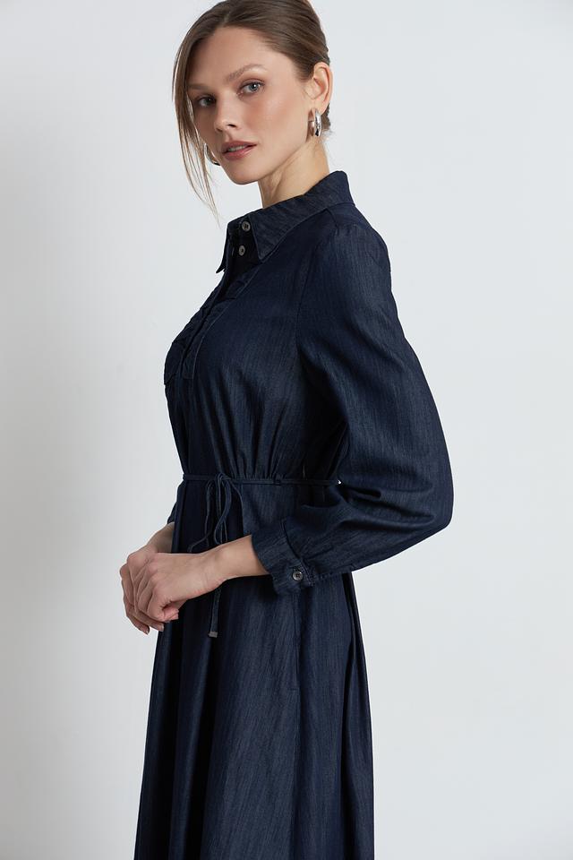 Это платье станет отличным выбором для создания повседневного образа. Оно прекрасно сочетается с кедами или босоножками. Универсальный темно-синий цвет легко комбинируется с другими элементами гардероба.