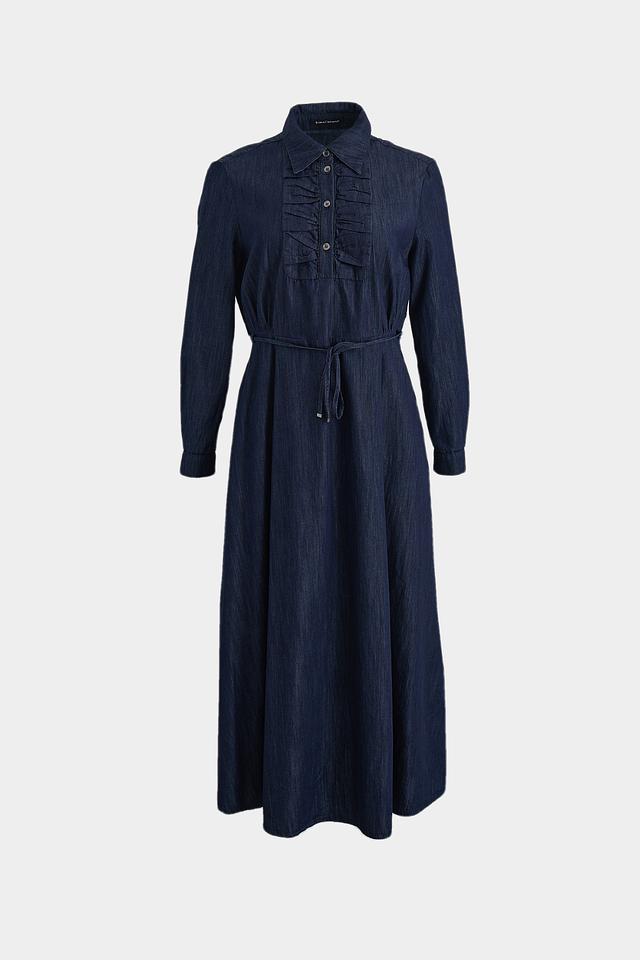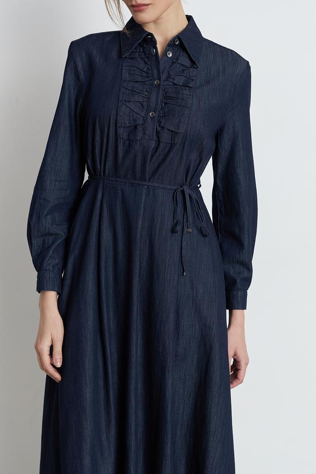 Джинсовое платье Luisa Cerano темно-синего цвета выполнено в стиле casual с длинными рукавами и поясом. Платье имеет рубашечный крой и застегивается на пуговицы. Состав: хлопок 100%