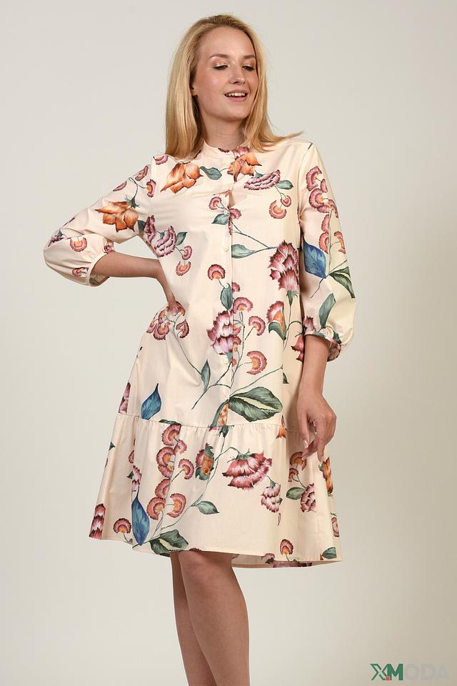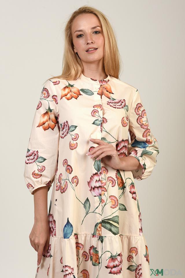 Платье Luisa Cerano бежевого цвета с ярким цветочным принтом – идеальный выбор для создания женственного и стильного образа. Модель выполнена из 100% хлопка, что обеспечивает комфорт в носке. Состав: хлопок 100%