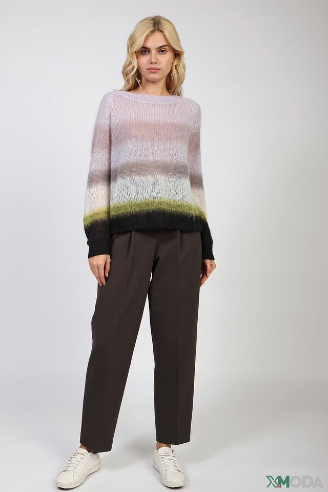 Женский пуловер Luisa Cerano нежно-лилового цвета с градиентным переходом в зелёный и чёрный. Модель выполнена из мягкой пряжи с добавлением мохера, что придает ей лёгкость и воздушность. Состав: мохер 45%, полиамид 36%, шерсть 19%