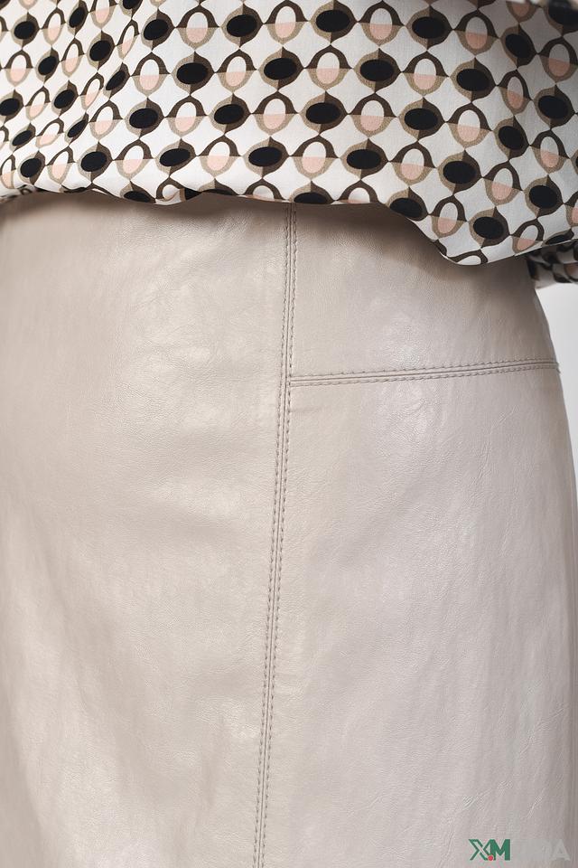 Юбка изготовлена из высококачественной ткани, имитирующей кожу, что придает ей элегантный и современный вид. Материал отличается мягкостью и приятными тактильными ощущениями.
