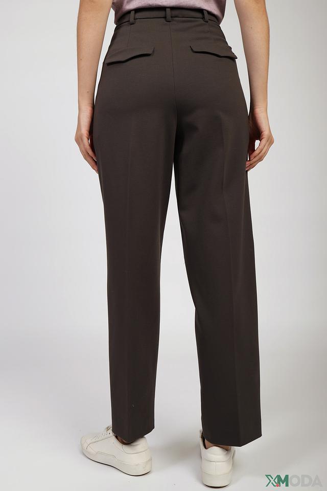Брюки имеют прямой крой и завышенную талию, что обеспечивает комфортную посадку и подчеркивает достоинства фигуры. Наличие складок придает брюкам элегантный и утонченный вид.