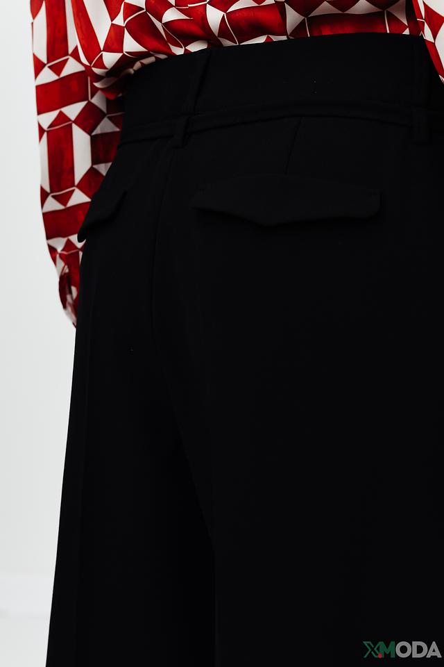 Состав ткани: 64% полиэстер, 27% вискоза, 9% эластан. Этот микс обеспечивает приятные тактильные ощущения, хорошую посадку и лёгкость в уходе. Брюки отлично сохраняют форму и не мнутся.