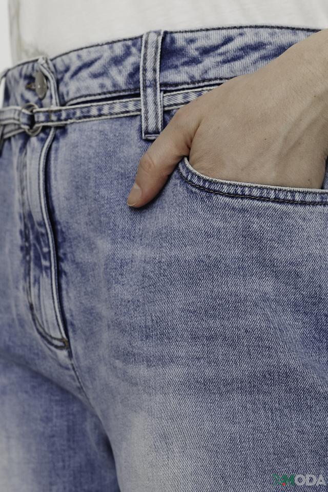 Джинсы имеют прямой крой и укороченную длину, что придает им современный и модный вид. Эффект потертости добавляет образу непринужденности и индивидуальности. Классическая застежка на молнию и пуговицу обеспечивает надежную фиксацию.