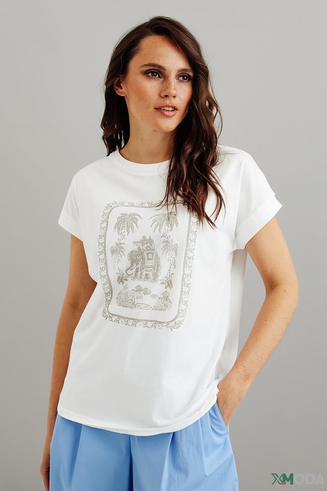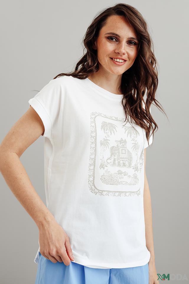 Белая футболка Luisa Cerano с оригинальным графическим принтом станет стильным дополнением к вашему гардеробу. Изготовлена из 100% хлопка, обеспечивая комфорт и воздухопроницаемость. Состав: хлопок 100%