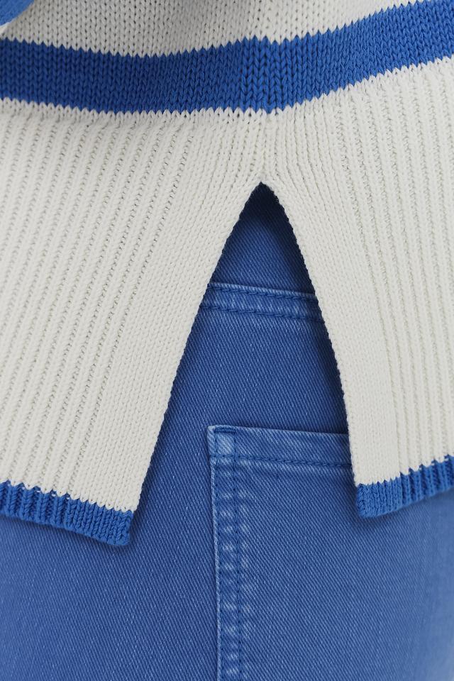 Этот стильный пуловер от Luisa Cerano станет отличным дополнением к вашему гардеробу. Он выполнен в классическом дизайне с горизонтальными полосами синего и белого цветов, что придает ему свежий и современный вид.