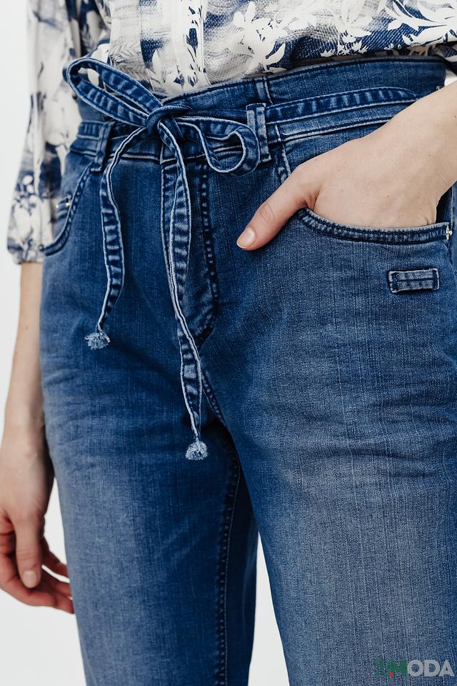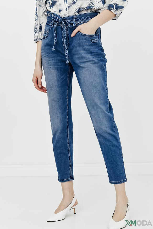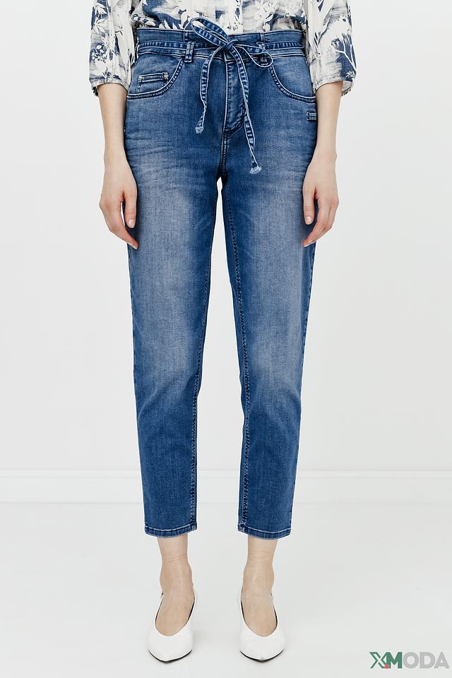 Женские джинсы MAC синего цвета с высокой посадкой и поясом-завязкой. Модель выполнена в стиле casual с эффектом потертости и имеет удобный крой. Состав: хлопок 92%, полиэстер 6%, эластан 2%