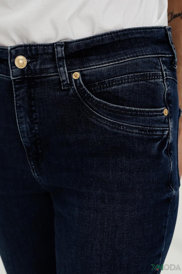 Женские джинсы MAC тёмно-синего цвета в облегающем силуэте Slim Fit. Модель выполнена из плотного денима с небольшим добавлением эластана для комфортной посадки и свободы движений. Классический пятикарманный крой. Состав: хлопок 71%, полиэстер 16%, модал 11%, эластан 2%