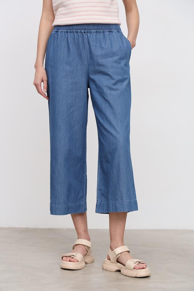 Брюки Maerz цвета деним – это стильная и комфортная модель кюлотов. Изготовлены из 100% хлопка, обеспечивающего удобство в носке. Пояс на резинке и свободный крой делают эти брюки идеальным выбором для повседневной носки. Состав: хлопок 100%